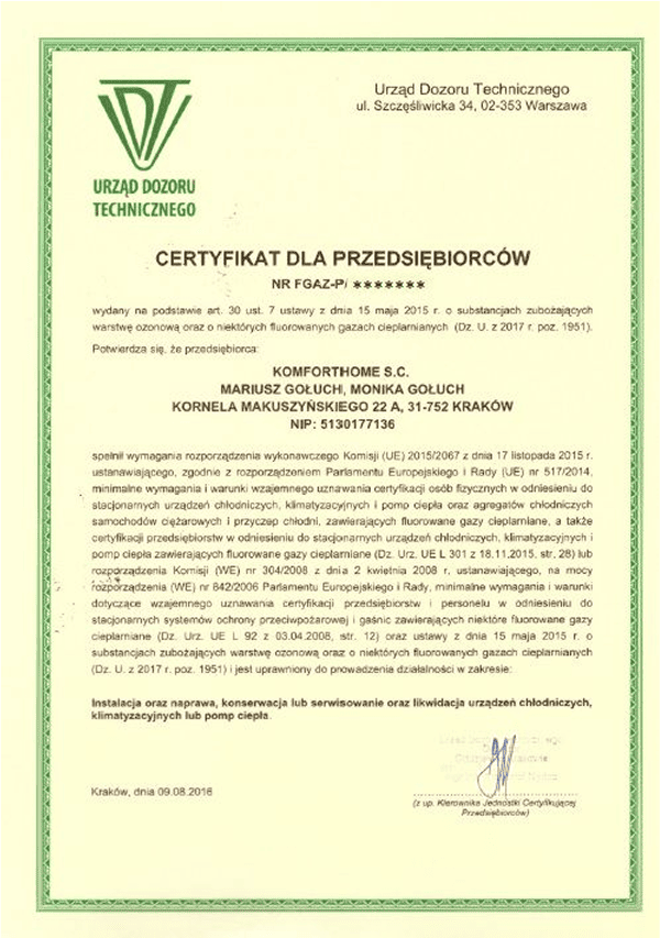 Cyklicznie bierzemy udział w szkoleniach produktowych podnoszących naszą wiedzę oraz kompetencje, które pozwalają nam na montaż i serwisowanie urządzeń różnych marek, takich jak: GREE, MITSUBISHI, LG, PANASONIC, FUJITSU, FUJI, TOSHIBA, HAIER, KAISAI, AUX, DAIKIN, SAMSUNG, ROTENSO, COOPER&HUNTER, SINCLAIR, ANDE, KONSI, KOMFOVENT.